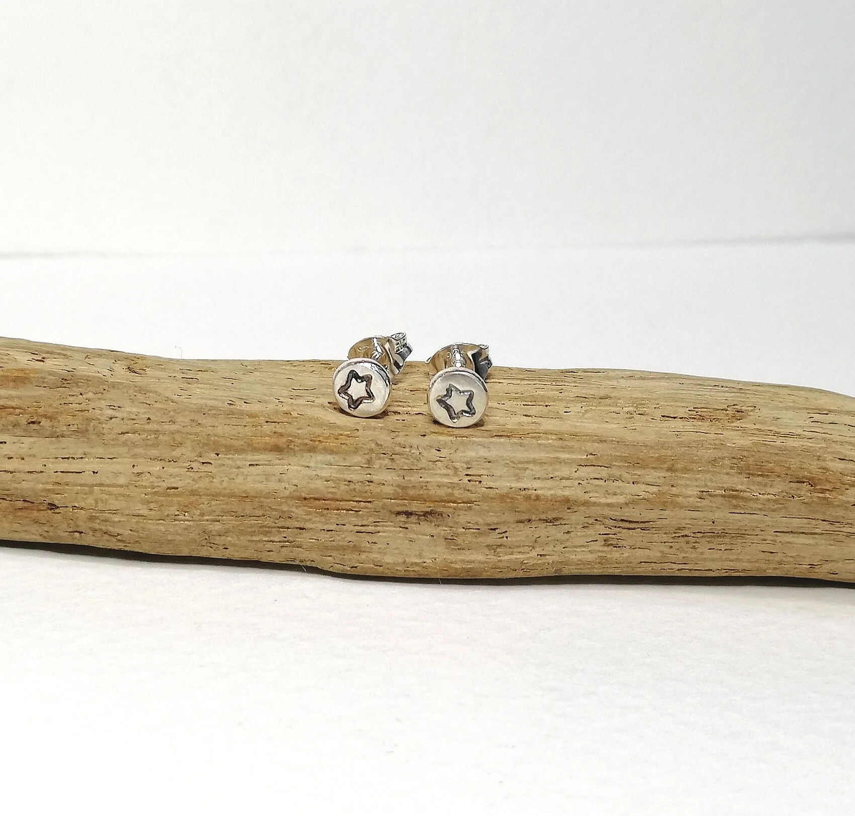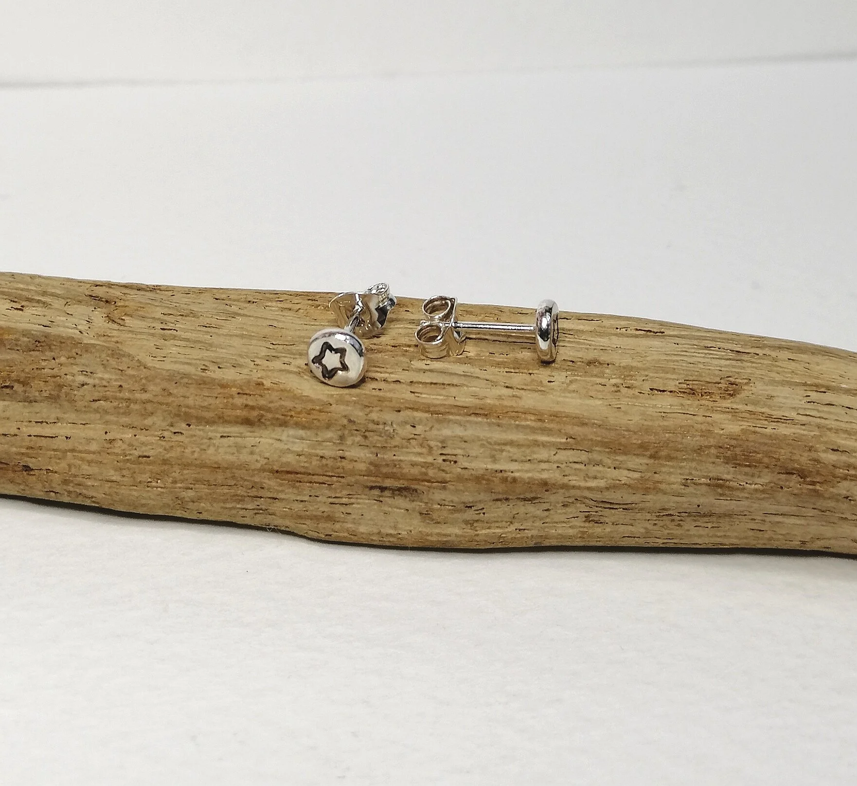 Cute little everyday wear studs. These are made with recycled sterling silver which is hand stamped with a star design.